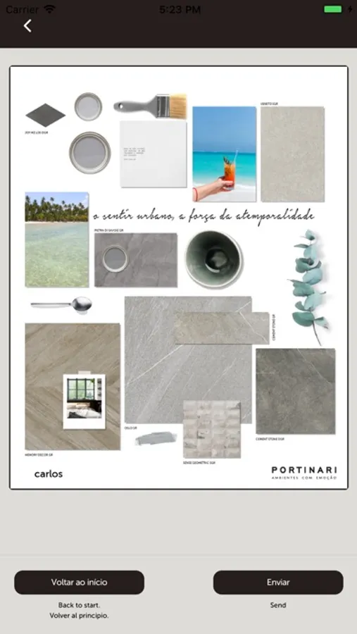 My Mood é um aplicativo na linha do autoconhecimento, para a construção de mood boards. A ideia é que o resultado represente seus gostos e essência através de perguntas disponíveis no app. Os mood boards são muito usados por arquitetos e designers para conhecer o cliente e assim desenvolver projetos que reflitam sua personalidade. Aqui você irá descobrir quais produtos Portinari combinam com o seu jeito de ser e sentir.