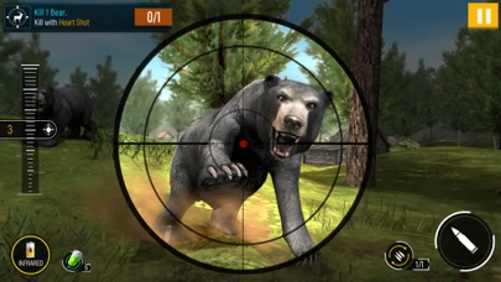Shoot and kill the different animals with your sniper gun. But, be careful, if you miss your aim, you might just become the hunted, the prey!