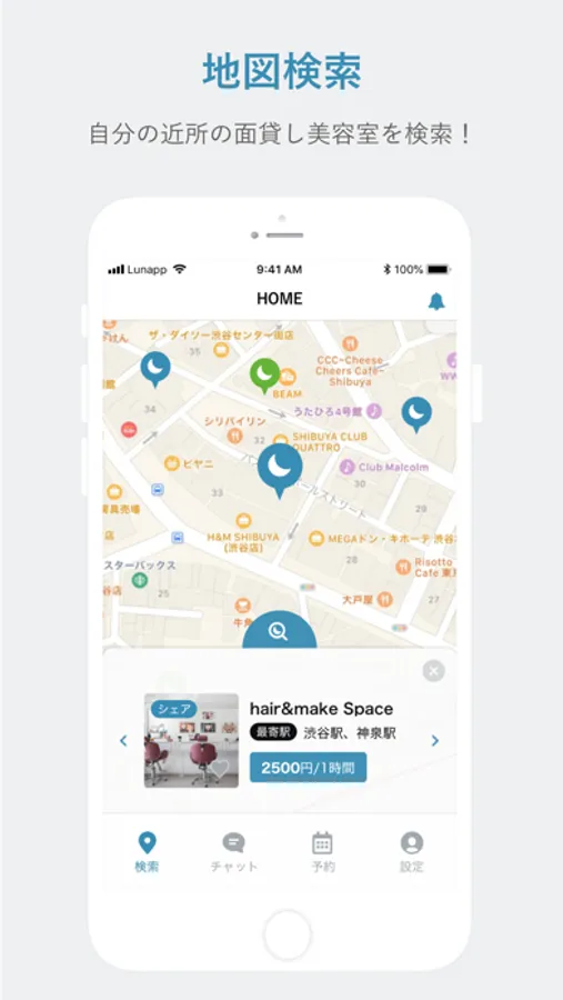 「Lunapp」は全国の美容室・面貸しサロン・シェアサロン・レンタルサロンで、24時間いつでも専予約が可能なアプリです!