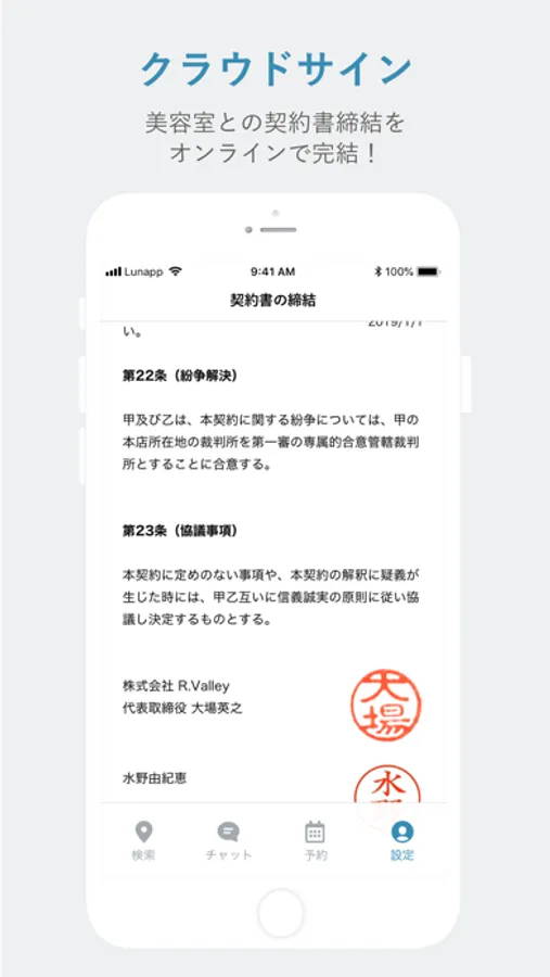 ・各美容室との面倒な契約書締結もオンラインで完結!初回入力時の内容をそのまま使えます。