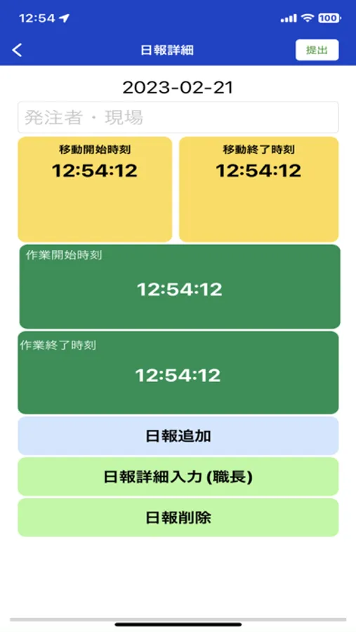 ・現場ごとに日報の入力ができます。