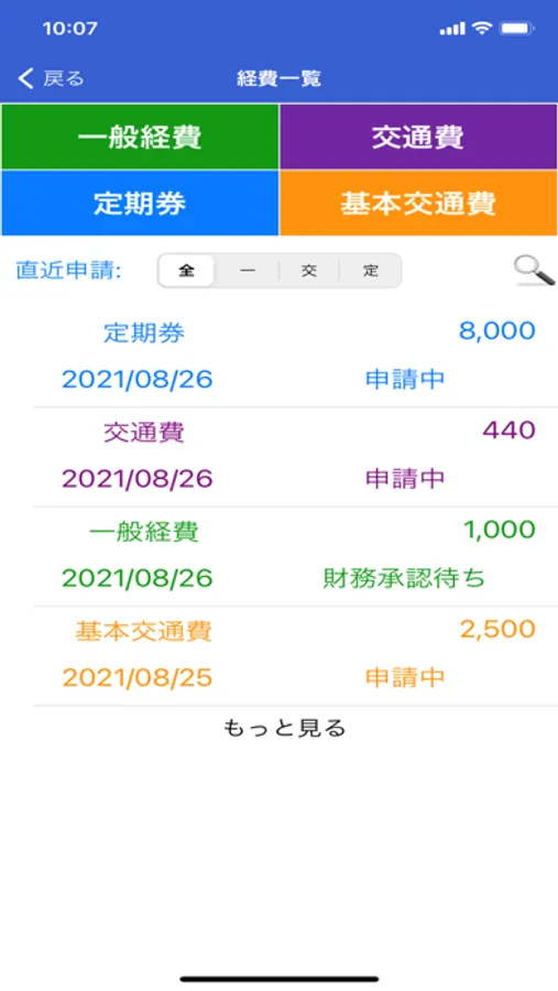 ・一般経費、交通費、定期券に関しての申請ができます。