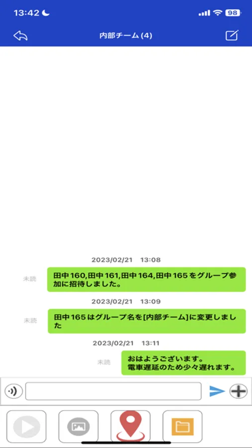 ・チャットにファイル(音声、位置情報、動画など)を添付して共有することができます。
