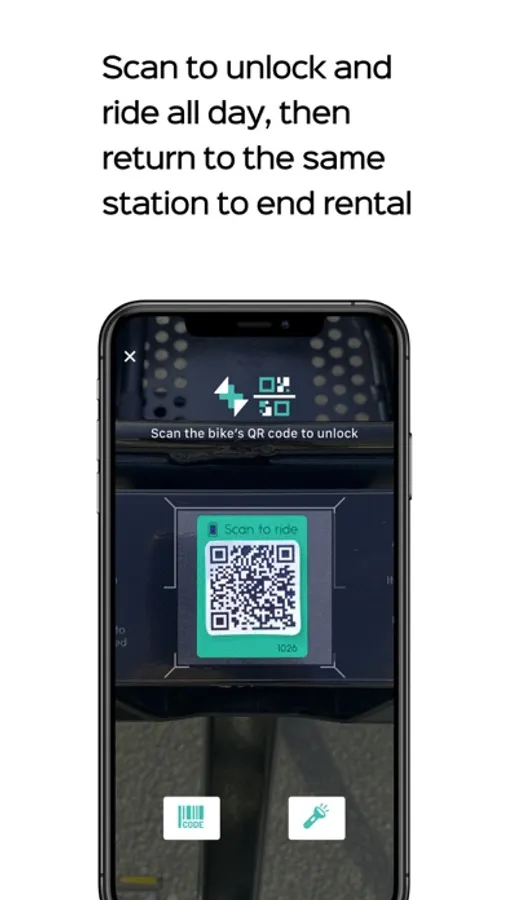 2. Rent - Scan the QR code on any available e-bike to begin your rental, and it will automatically unlock from the station.
