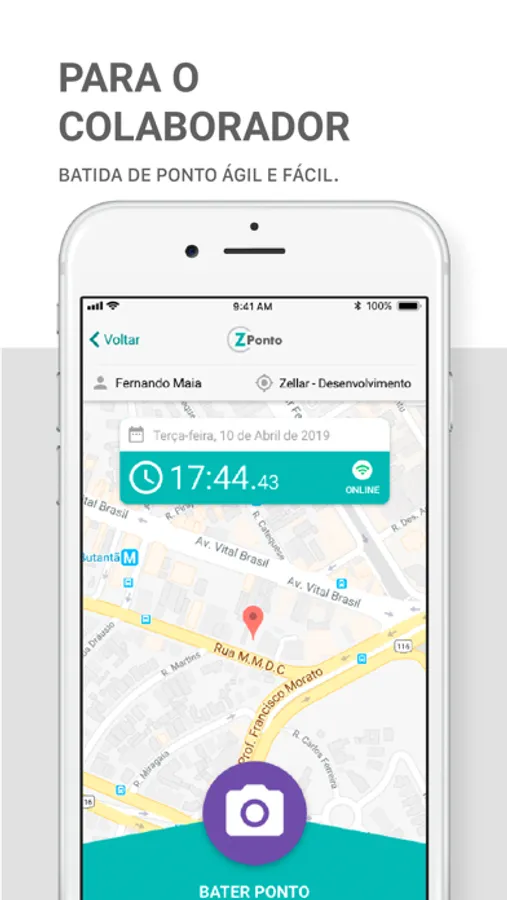 Aplicativo para bater o ponto e ter controle da sua jornada de trabalho.