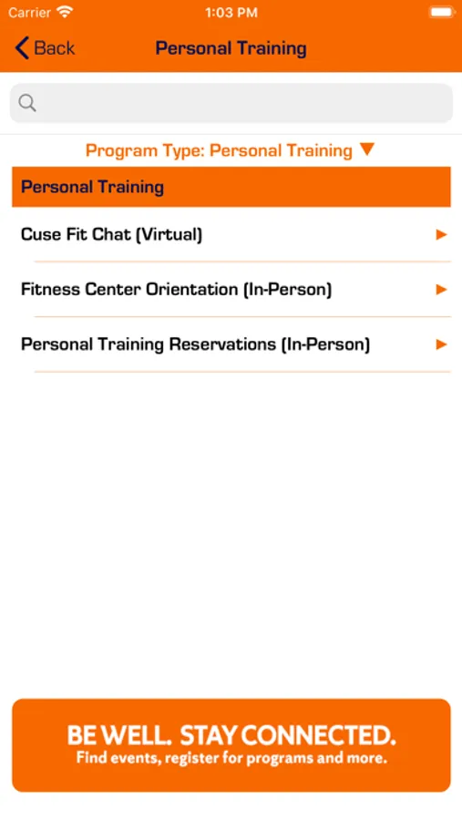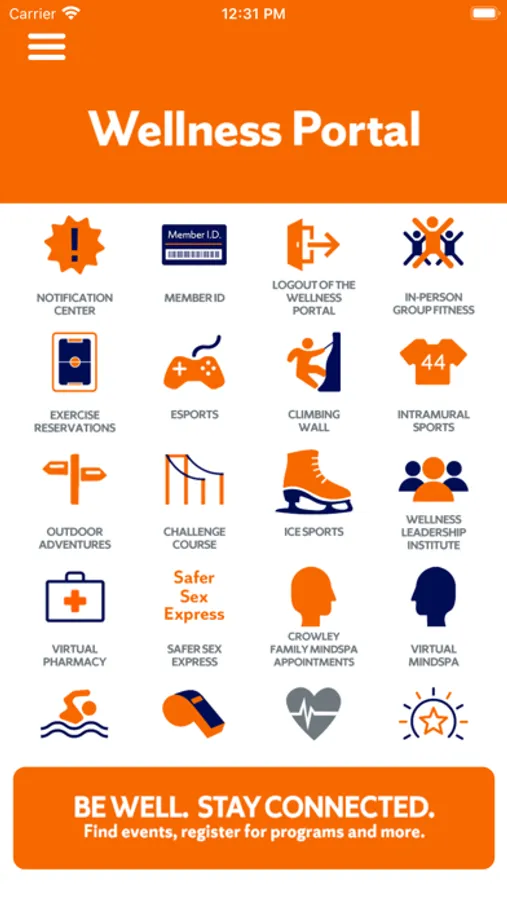 The Syracuse University Wellness Portal App helps users conveniently connect to holistic health and wellness services and resources. From quickly registering for fitness classes and outdoor adventure trips, shopping at the Virtual Retail Pharmacy, ordering free sexual health supplies with the Safer Sex Express and more, download and start using the Wellness Portal App today! Visit experience.syracuse.edu/bewell to learn more.