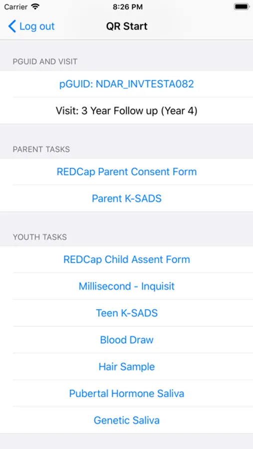 ABCD research study at the University of California San Diego. Allow research staff to scan a QR code and barcode to verify research participants. Research staff must log in with their provided username and password. QR codes and barcodes are given to staff before the participant's appointment.