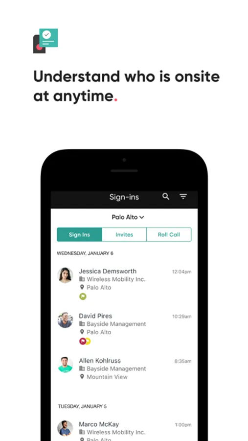 - See who is on-site: view guest lists, sign-in details and alert levels