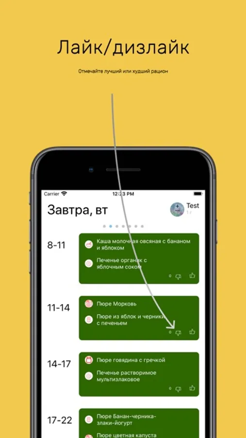 Из рациона можно убрать продукт в список аллергенов, можно отметить понравившейся набор продуктов для кормления, чтобы улучшить подбор рациона для следующей недели.