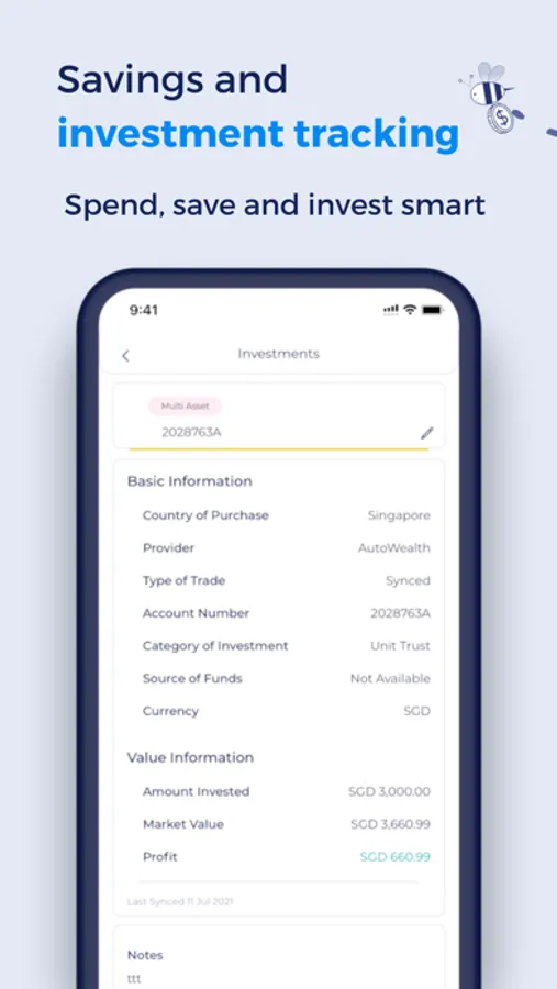 • Your investment portfolio in your hand, automatically categorised by asset classes so it's easy for you to track