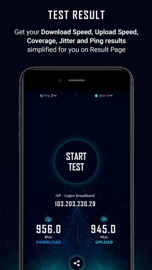 The application also captures your coverage as well as latency(ping) and jitter to show how goog your connection is for real-time application. The 5G Speed test application also provides you with other connection details like your IP address as well as the name of your internet service provider.