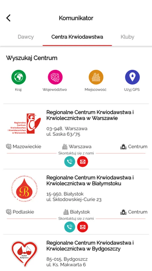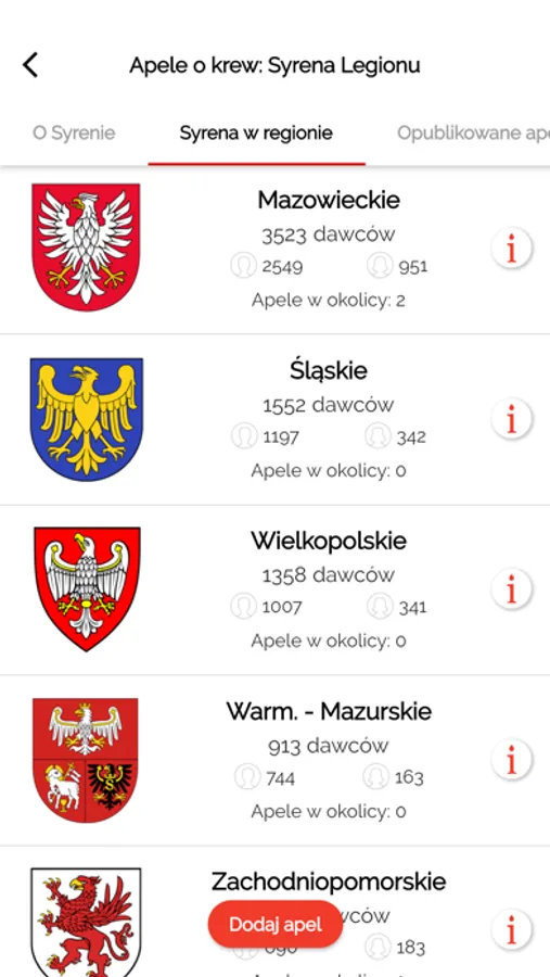 • System Reagowania Na Apele o Krew „Syrena Legionu” wspierając alarmowanie o potrzebie oddawania krwi w danym regionie i na daną osobę.