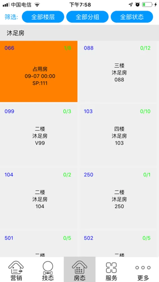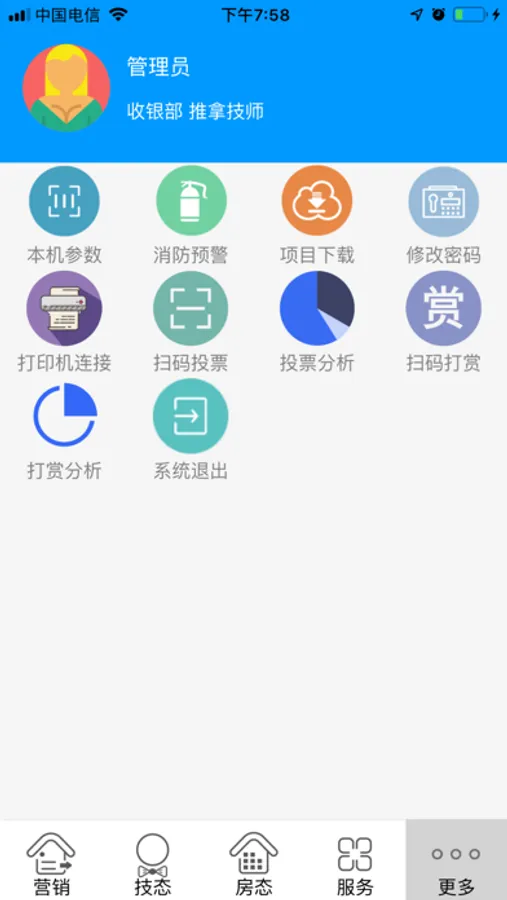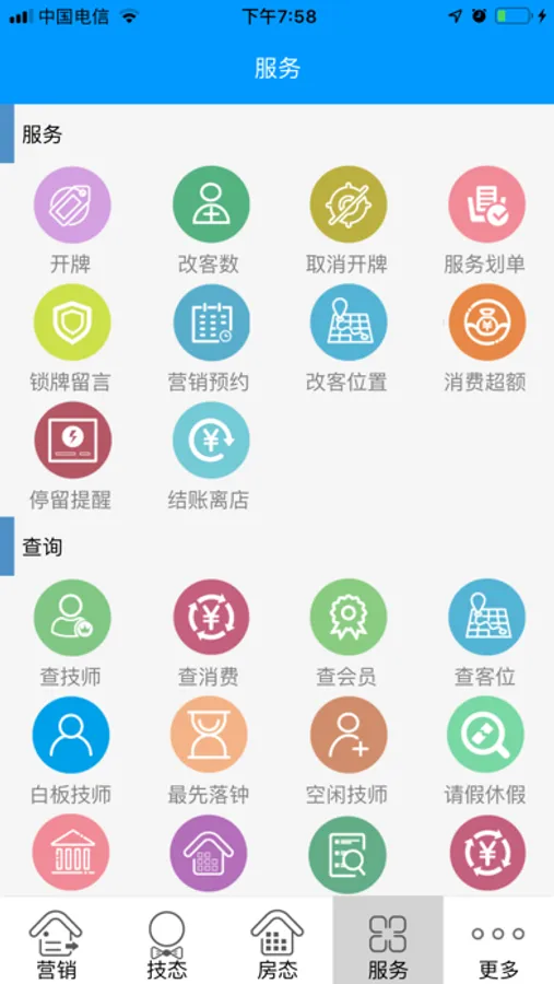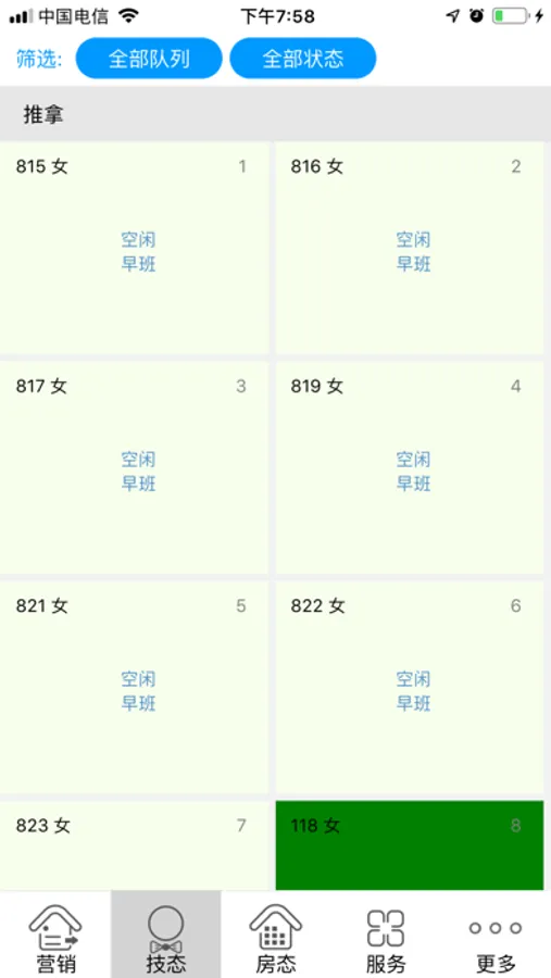 用于休息厅客户经理、部长向客人推介服务项目,方便客人实现选取自己想要的服务项目和点选自己满意的服务技师或快速的酒水下单。每位服务技师也配有近照和推荐介绍资料以及所有技师的空闲状态,方便客户点选自己的满意的服务项目和服务技师,避免由于技师太忙而让客人等待太久以及客人对安排的技师不满意频繁更换技师的情况发生。及时了解技师上钟情况和技师排位情况,提高上钟率,避免有的技师很忙而有的技师却又很闲,造成技师资源浪费而导致顾客投诉;