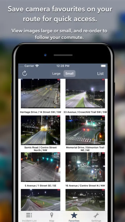 - Save your favorite cameras for quick access to see how clear/congested your usual routes are.