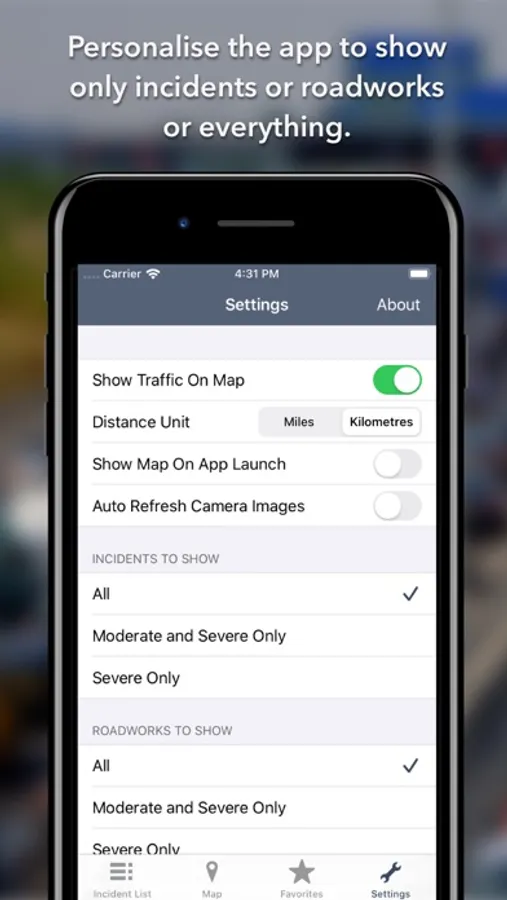 - You can quickly see the distance the incident is from you, the road name and the type of incident.
