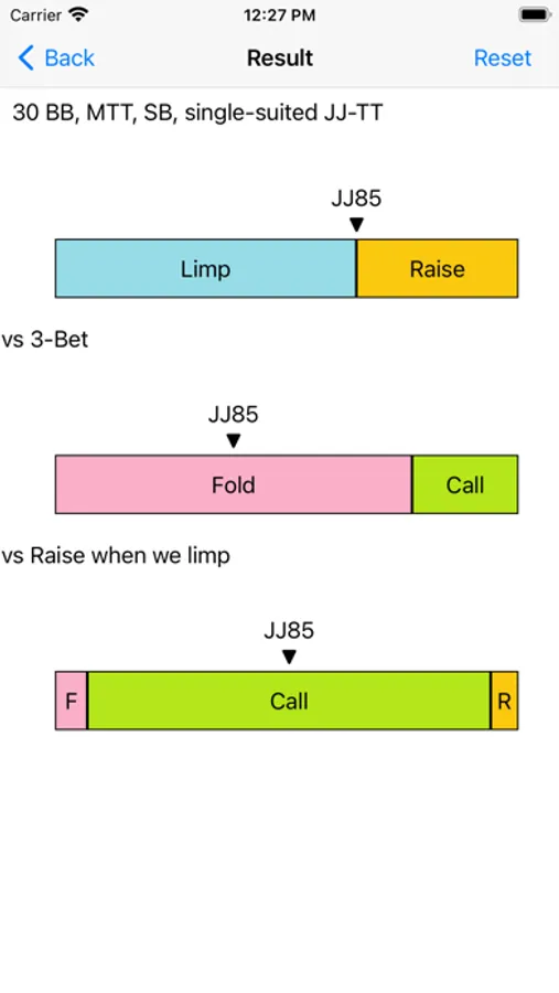 We made hundreds of billions of simulations using one of the most famous and recognized poker solvers to find GTO (Game Theory Optimal) solutions for each hand in most preflop positions. As a result of the simulations, we received a huge amount of data. We presented it in the most understandable graphical form (in our personal interpretation). We divided all 270725 Omaha hands into 82 categories. Choosing a hand, position, and rake level, you will see which part of this category the solver recommends to fold, call, raise, 3-bet, 4-bet, or limp. Preflopper will also show you, which part of this category your hand falls into.