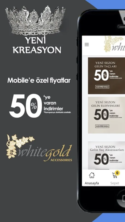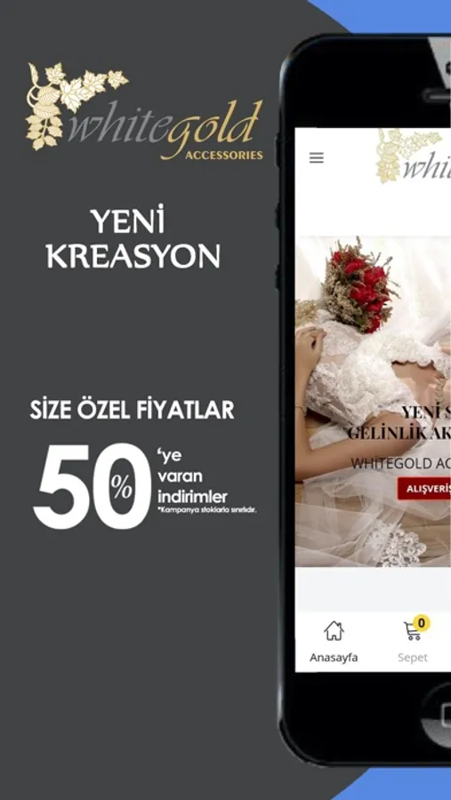White Gold Accessories uygulamamız sayesinde artık rahatlıkla ; gelinlik ürünleri, gelinlik aksesuarları, gelin tac, gelinlik tamamlayıcı ürünler gibi benzeri ürünlere görebilir. Binlerce çeşit aksesuar ve ürünlere kolayca ulaşabilirsiniz.