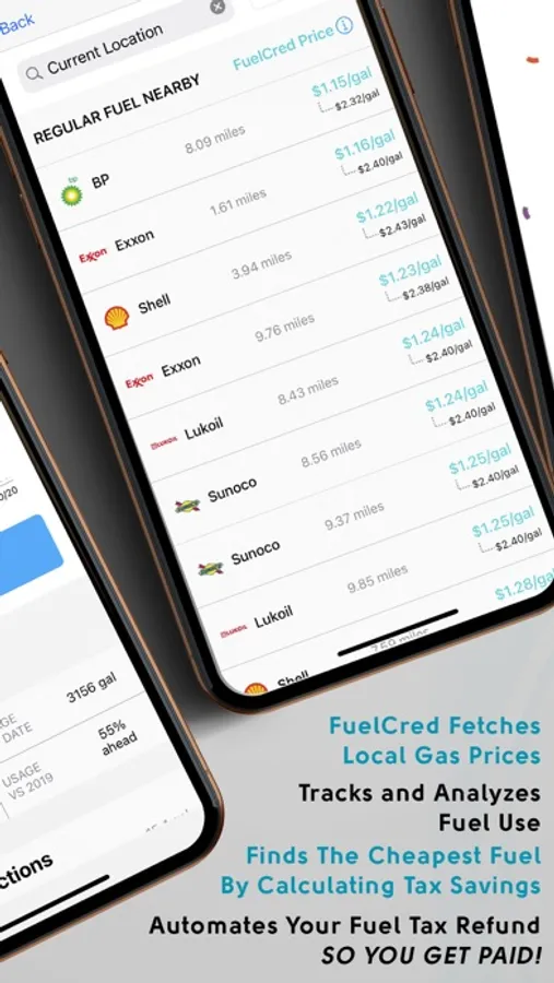 2) FuelCred determines which gas stations offer the best prices by projecting tax savings based on your historical fuel use
