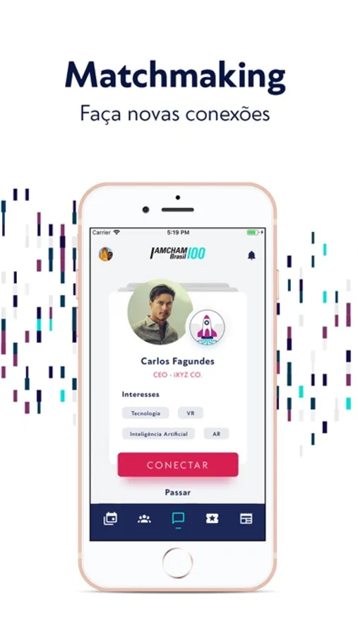- Faça check-in ao chegar ao evento e tenha possibilidade de conectar-se em chats individuais com os participantes.