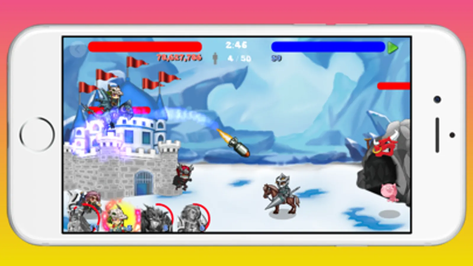 ●This game is a 2D side-scroller, tower-pushing game. Players must pay attention to the troops of the enemy team and their own energy consumption to dispatch the most efficient combination of troops and powerful control skills in order to conquer the enemy's city within the time limit.