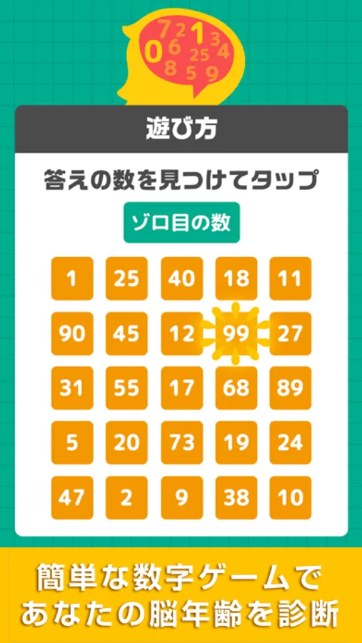 遊び方は様々なお題にあった数字を見つけてタップするだけ!