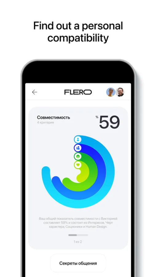 Fill out your profile in Flero and the application will analyze you by character types, goals, interests, etc.