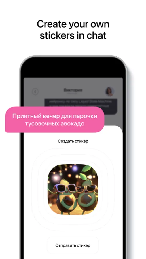 Meet and communicate with people around the world in a convenient full-fledged messenger. Also, thanks to the integrated artificial intelligence in the application, the functionality of generative stickers is implemented. Write a request and in a few seconds get the desired image without leaving the chat.