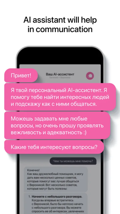 - Using artificial intelligence integrated into the application, get tips for productive communication based on the analysis of public information from your profiles.