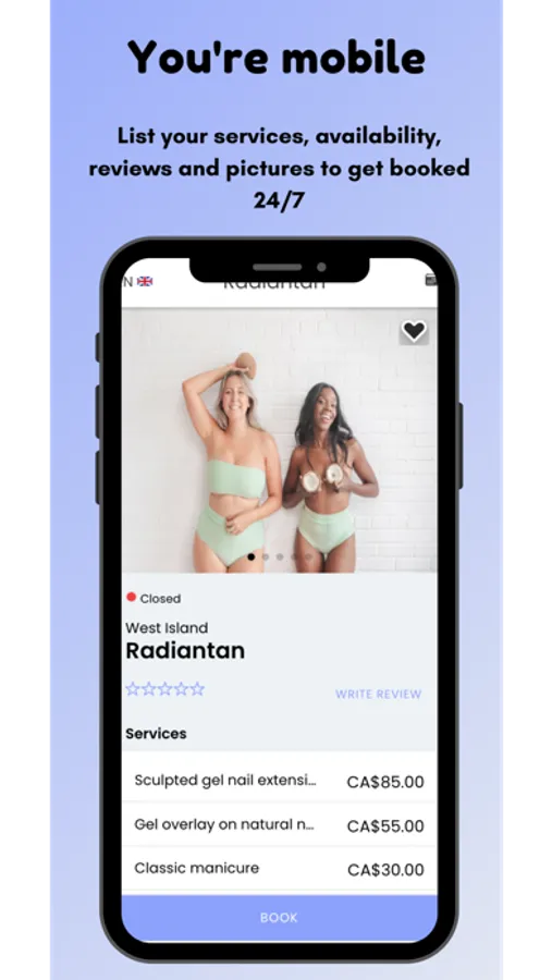 • Showcase your work by connecting your Instagram account and upload photos to your booking page