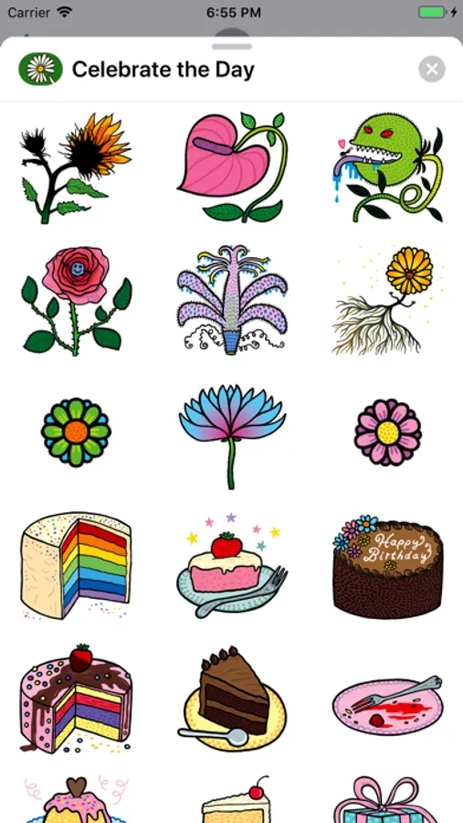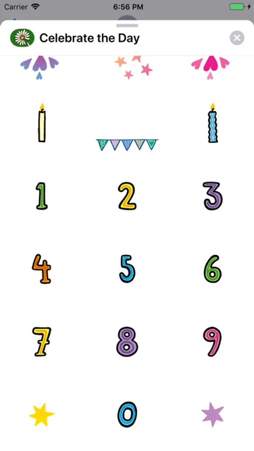 You can do a lot of fun combinations with stickers on stickers. For example: drag and drop the candles and numbers on top of a cake!