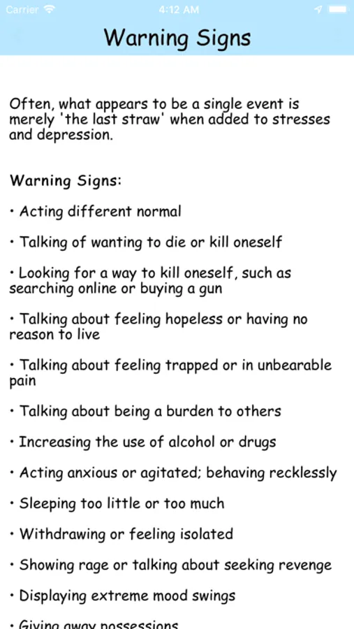 This app includes information on the Yellow Ribbon Suicide Prevention Program, and has features such as Call 4 Help and Ask 4 Help cards.