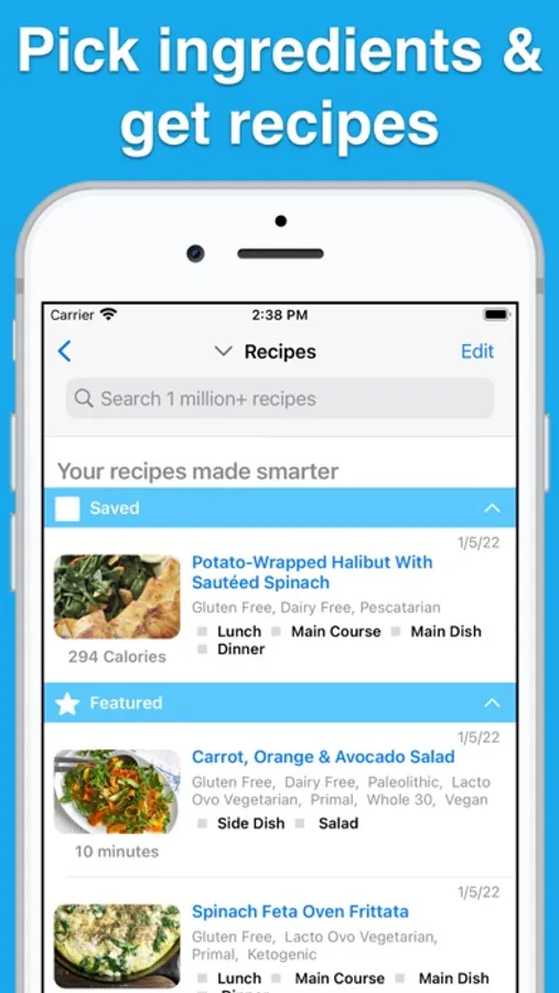 Just take a picture of ingredients at home and get personalized recipe suggestions! And, log recipe calories with a single button.