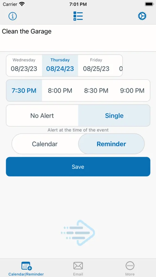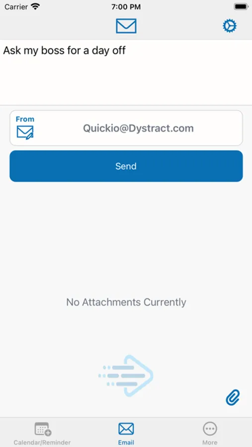 When you need to remind yourself quickly to do something, Quickio is your answer. Calendar, Reminders, and Emails, whatever works for you. The quicker you close our app, the happier we are. We integrate with the existing Apple Calendar, Reminder, and Email apps on your device to make your life easier.