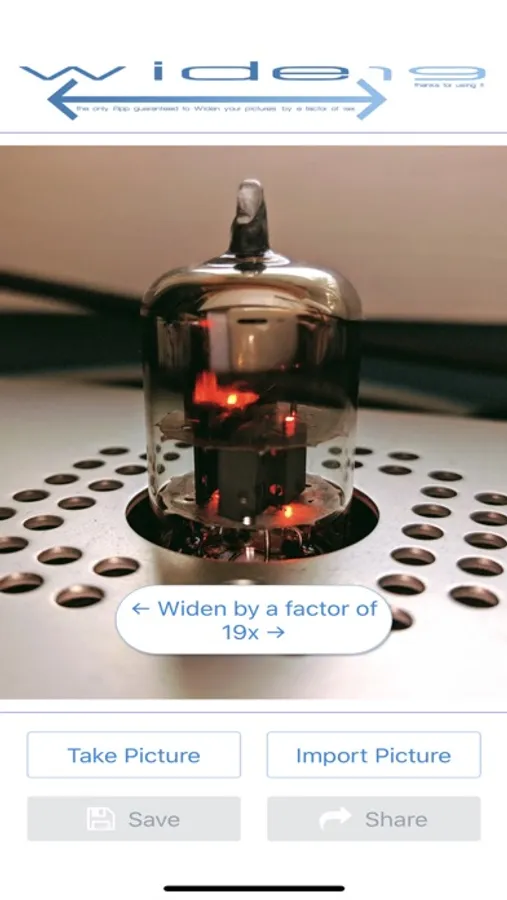Have you ever taken a picture (photograph) with your digital portable phone and asked the following question to yourself? "I somewhat like this image I've just captured, but I simply wish there were a way for it to be nineteen times wider than it currently is." Well, look no further, because there is now finally an application that easily and seamlessly accomplishes just that. You can snap a quick pic, widen it into a patented #Widie and upload it to all of your favorite social media sites, right from the app itself. Or, or you can upload an already existing picture from your phone's storage, widen it into a patented #Widie and upload it to all of your favorite social media sites, right from the app itself. We hope you love elongating your favorite photos and sharing them to your online friends with Wide19. Thanks for using it.
