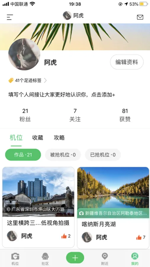 G位APP,一个专注于发现美好、分享机位的摄影师交流平台。G位一直鼓励探索与创新。您的照片,如果还没有增加地理维度,相册可能还是一片混乱,价值可能还没有最大化,来G位吧!我们提供了新的玩法,靠实力争当机主,您就是机主世界最大的王!我们帮助你的作品拓展更大的价值!