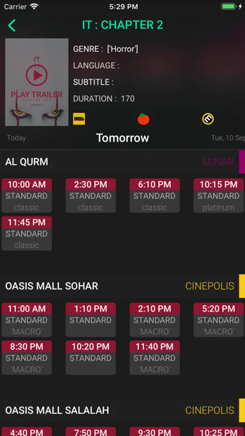 Easy to use swipe based navigation for finding Movies and Cinemas in Oman.