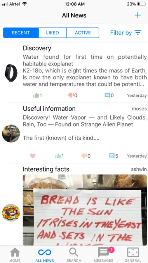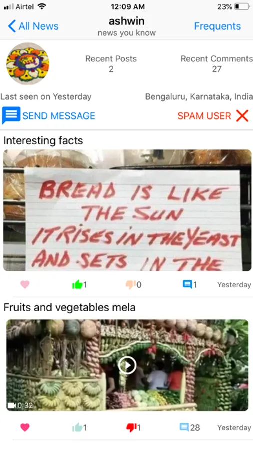 1) Users can post news, incidents, events and medias and others can comment or vote as like it or dislike it. Also mark as favourite which can be filtered later on. Useful sorting and filtering criteria are available