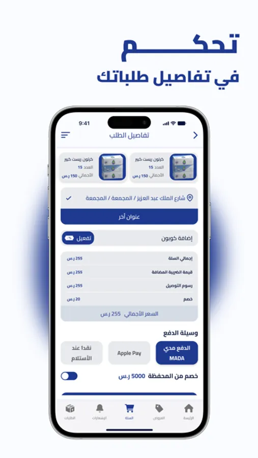تطبيق لعرض منتجات شركة مياه رست حيث يقوم التطبيق بعرض منتجات المياه مما يتيح للمستخدمين طلب منتج معين عن طريق اضافة لسلة المشتريات ثم طلب المنتج عن طريق وضع عنوان موقع استلام الطلب وبيانات المستخدم حيث يقوم المستخدم بدفع قيمه الطلب عن الاستلام من مندوب الشركة