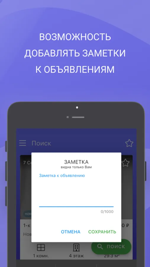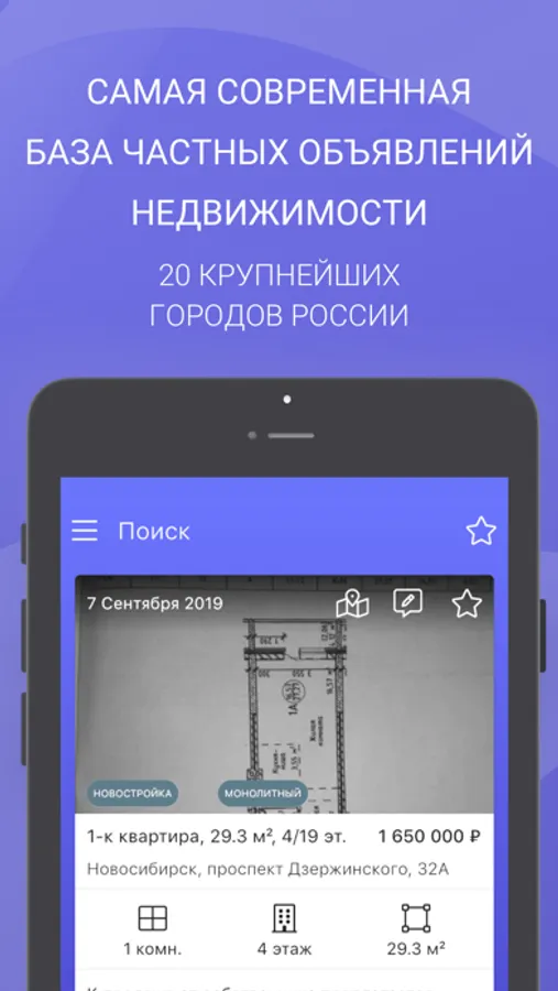Мобильный клиент для онлайн сервиса "БАЗА КВАРТИР", предназначенного для поиска объявления недвижимости от частных лиц в 20 городах России.