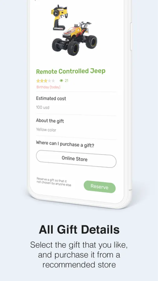 - Mark and reserve a selected gift in order to avoid purchasing the same gifts.