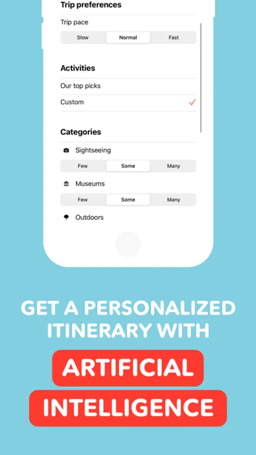 Our AI-powered trip planner uses artificial intelligence to suggest you a personalized trip plan based on your interests and pace. It finds the shortest route between the stops to give you more time to enjoy the activities and make the most of your trip.