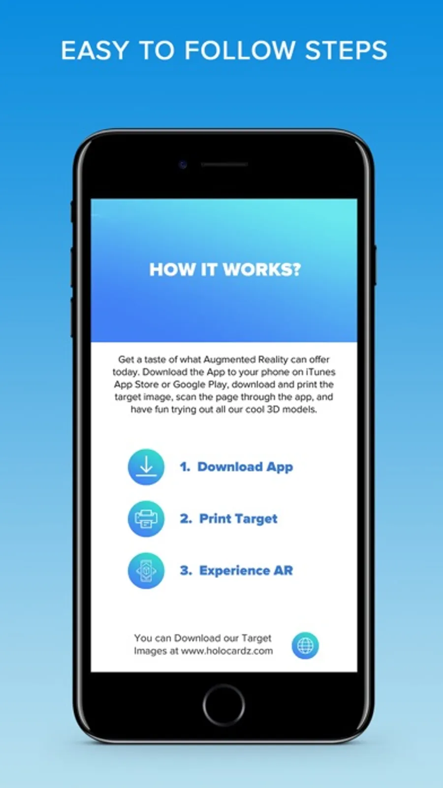 2. Download and print the HoloCardz augmented reality marker. You will find a link in the app or at www.holocardz.com.