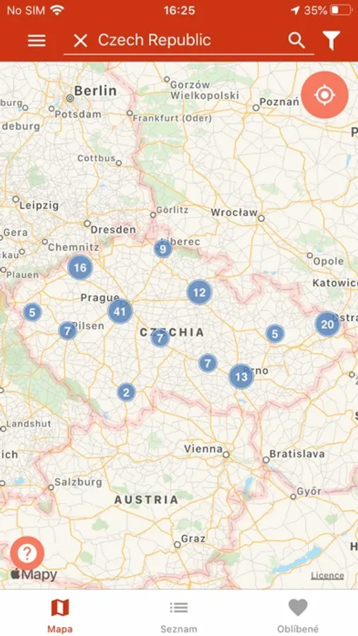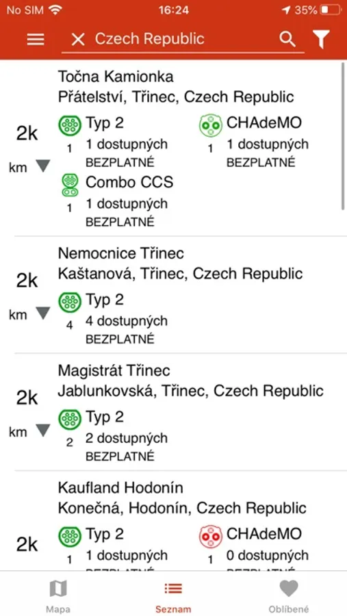 - an overview of the CEZ Group charging station network in the form of an interactive map with navigation to a specific charging station