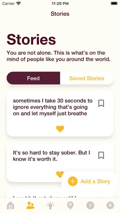 - Moderated stories from other people in recovery, to show you that you're not alone