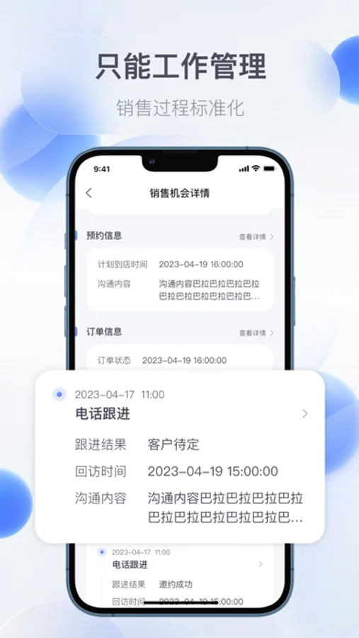 【客户详情页】智能工作管理:销售过程标准化,合理的设计客资内部流向,提高签单转化率。