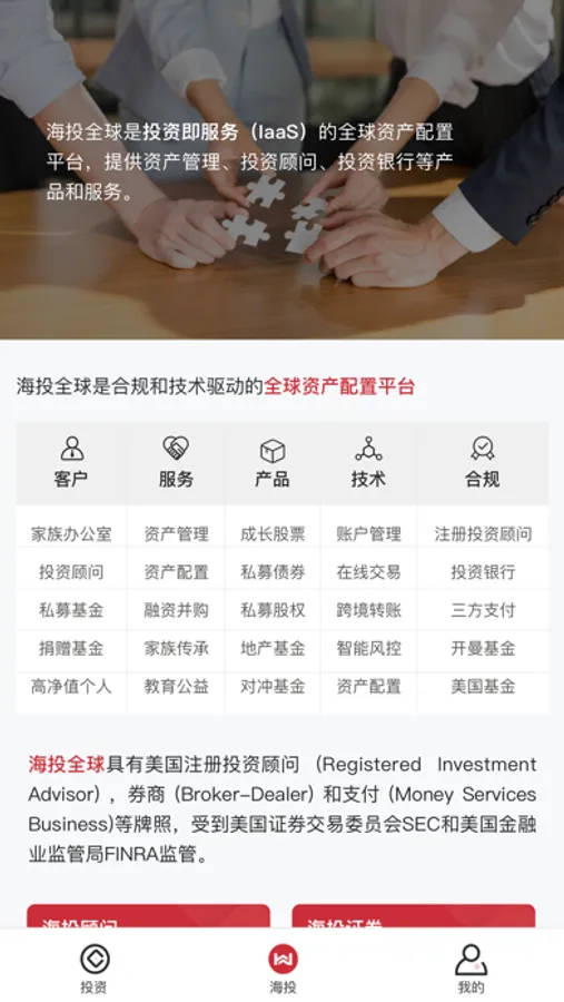 海投顾问受到美国SEC和FINRA监管,具有美国注册投资顾问资质(Registered Investment Advisor) ,投行-券商(Broker-Dealer) 牌照和支付 (Money Services Business)资质。