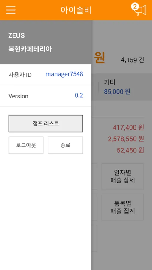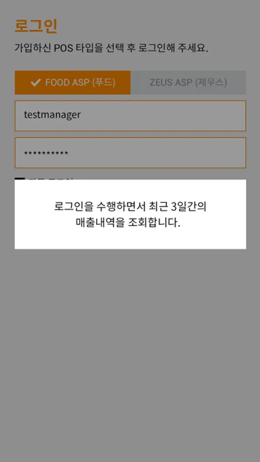 솔비포스 POS 프로그램 이용시 ( 푸드ASP , ZEUS ) 모바일 매출조회용 앱입니다.