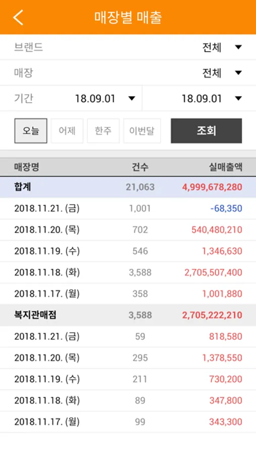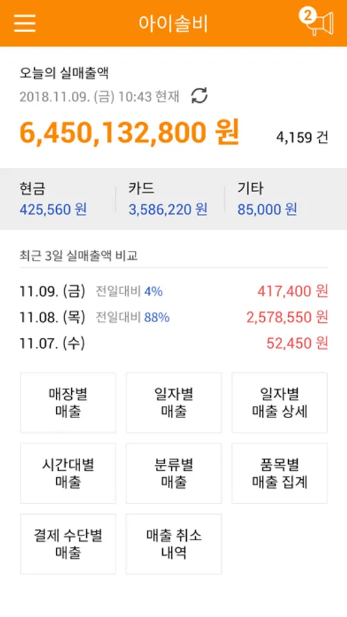 매출현황 ( 결제수단별,일자별,상품별등 )을 손쉽게 조회 할수가 있습니다.