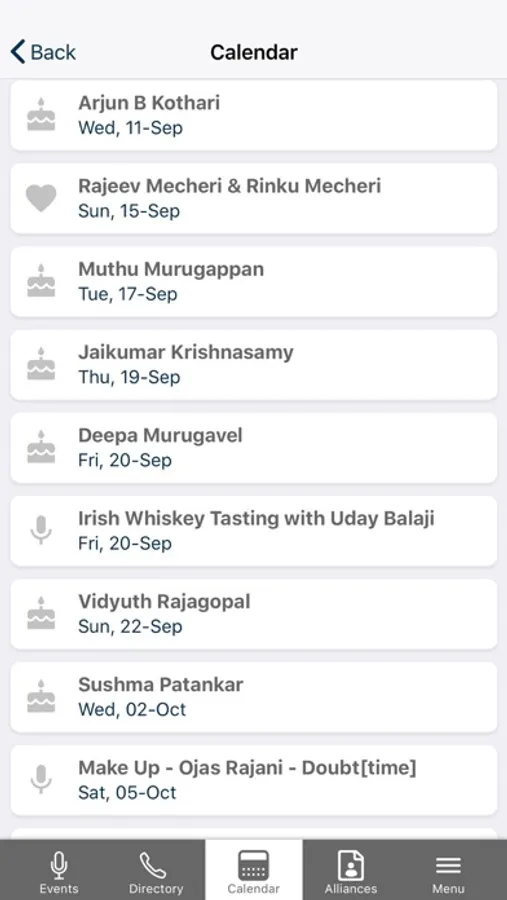 - CALENDAR : Calendar of Birthdays, Anniversaries of Members and Spouses.