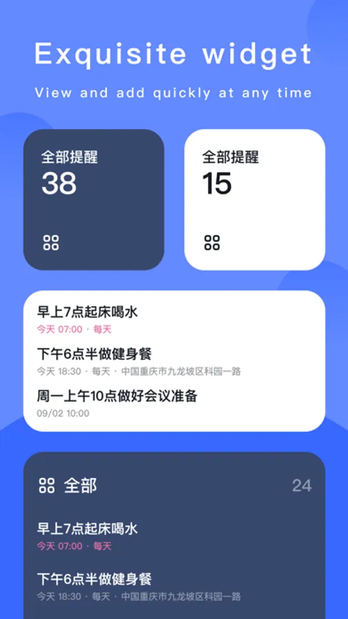·提醒:在设定的时间和地点准时提醒;